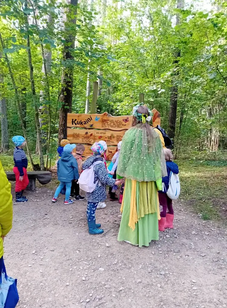 Lauku bērniem daudz dabas labumu un krāšņuma ir visapkārt. Bet būt īstā mežā kopā Rūķi gan var gadīties tikai reizi mūžā. Zemītes bērnudārza "Prātnieku", "Bitīšu", "Pogu" un "Sprīdīšu" grupiņu bērniem tas bija liels piedzīvojums. Latvijas valsts mežu Tērvetes dabas parkā Rūķis ar gudru ziņu veda un stāstīja , ko ievērot un kā orientēties (vērtīgs padoms arī lielajiem), lai neapmaldītos. Bērniem visas Meža mātes takas garumā bija uzmanīgi jāiet un jāvēro gan augi ( rudenī uzziedējušas baltās vizbulītes un nogatavojušās meža ogas), gan jāvēro kukaiņus un jāmeklē sauss materiāls iekuram. Ik pa laikam bija jāliek eksāmens. Tā kā eksāmeni tika labi nolikti, tad nobeigumā visi kopā sakūra uguni ugunskura vietā Lutauša midzenī. Pēc garās pastaigas ( arī četrgadnieki sekmīgi to paveica) nekas labāks nevarēja būt par kopīgu pikniku ar ugunskurā ceptām desiņām un labirintu izpēti. Pat saule neskopojās ar siltumu. Atpakaļ uz autobusu visi aizvizinājās ar zaļo bānīti.