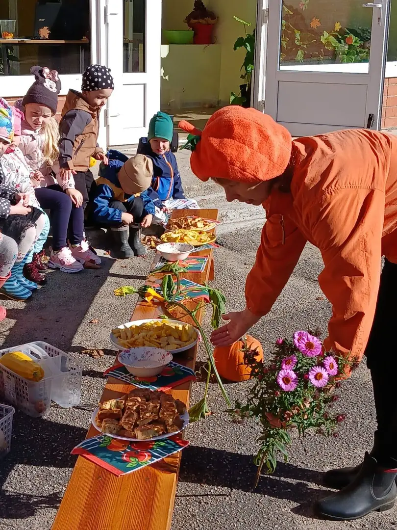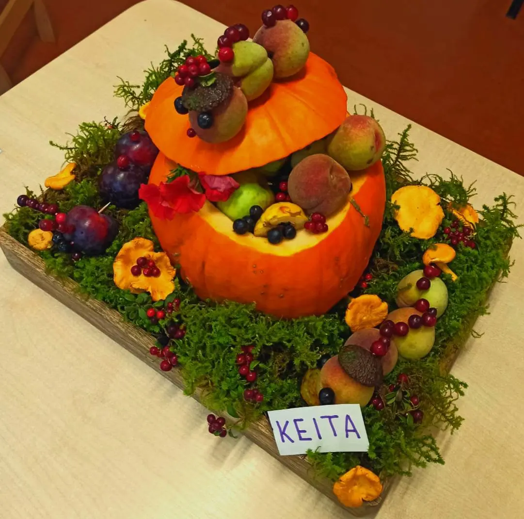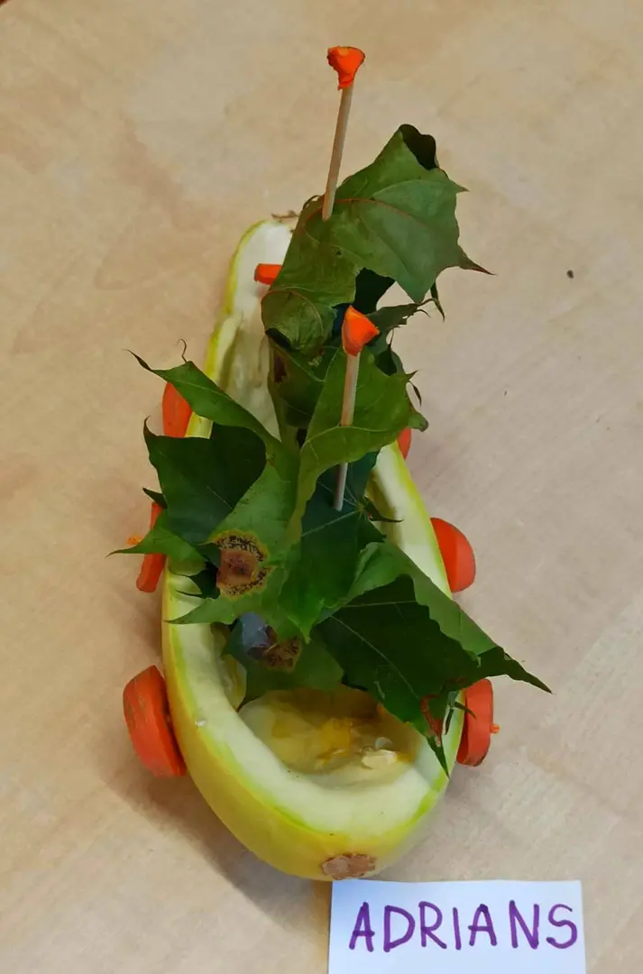 Priecājāmies par bagātīgu ražas izstādi grupās.