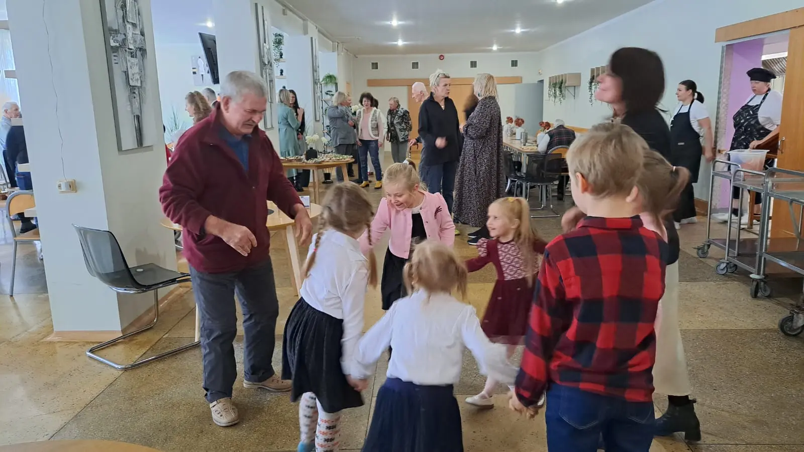 Bērnu čalas, radošās aktivitātes un mūzika ienesa pansionātā daudz prieka un gaišuma. Šādi brīži ir vērtīgi gan bērniem, gan senioriem — tie stiprina saikni starp paaudzēm un atgādina mums visiem, cik svarīgi ir dalīties sirsnībā.